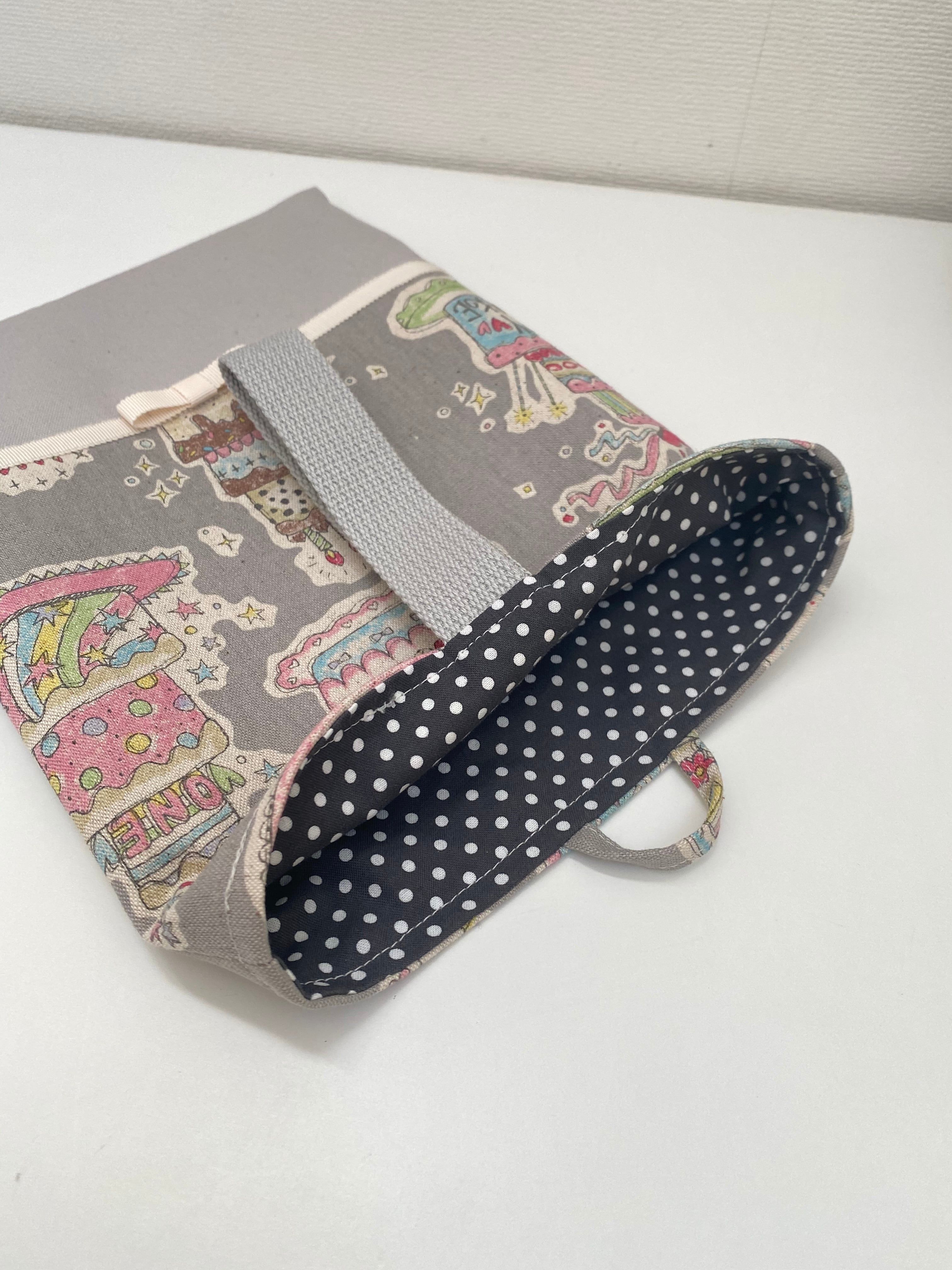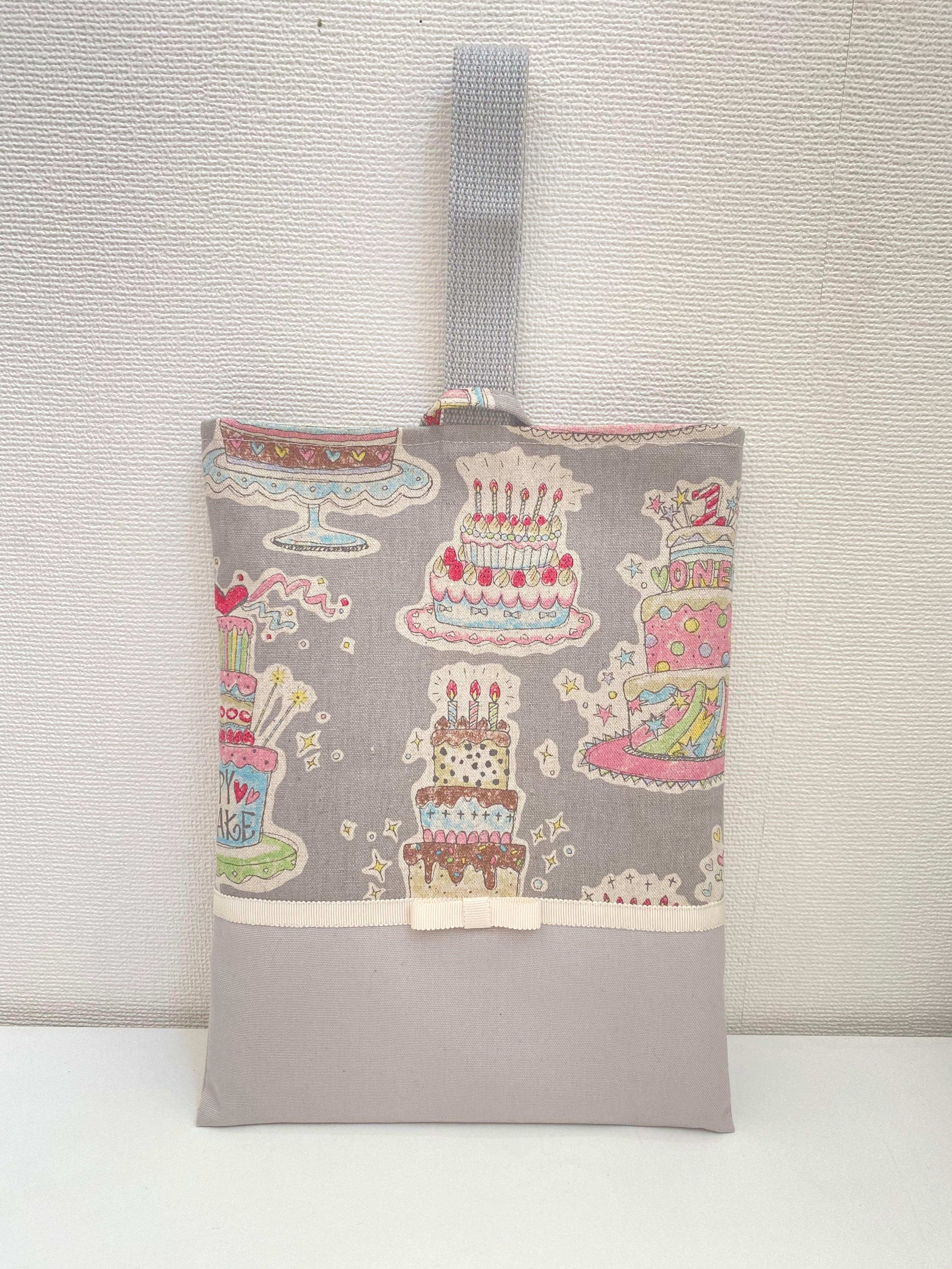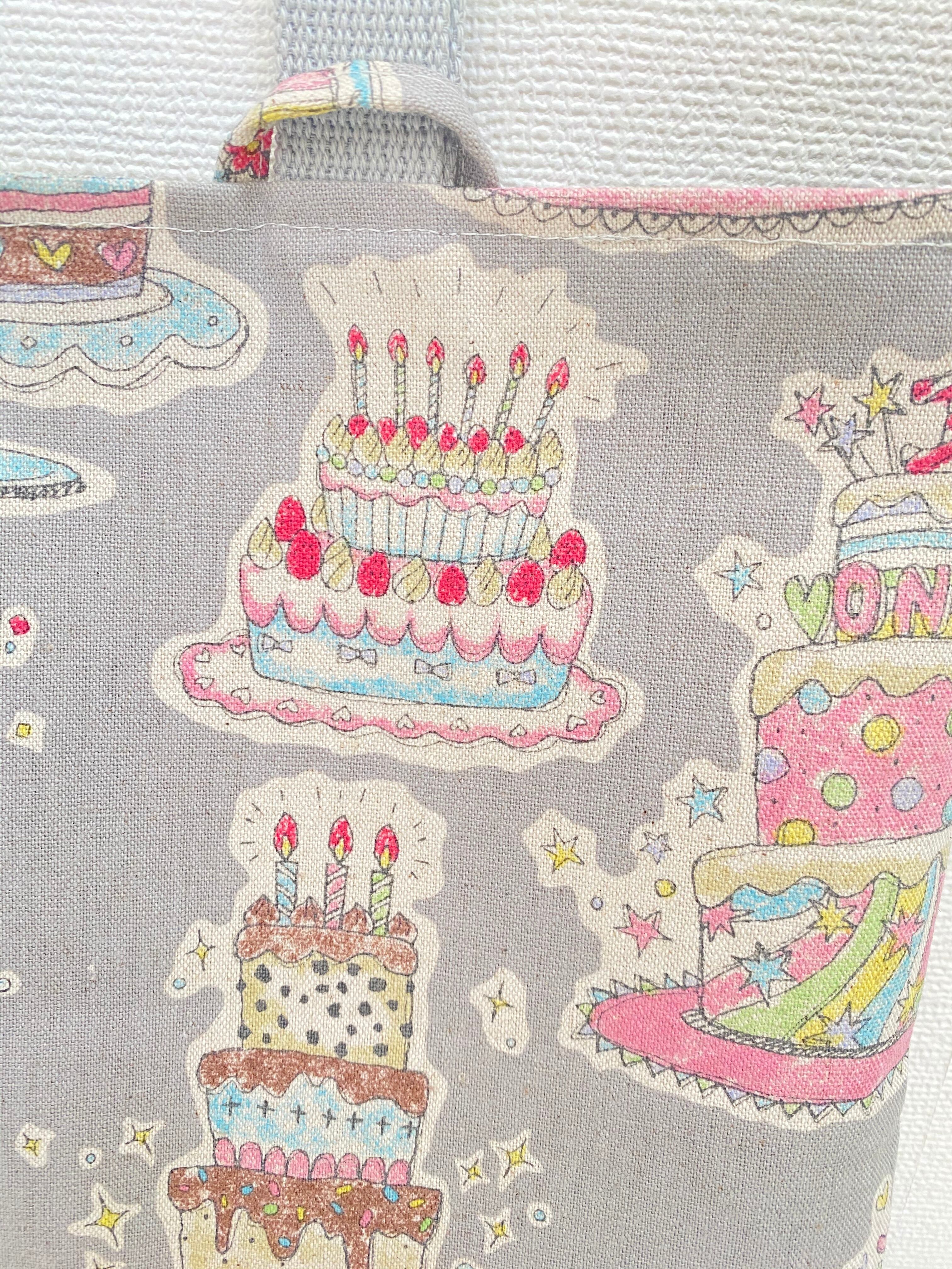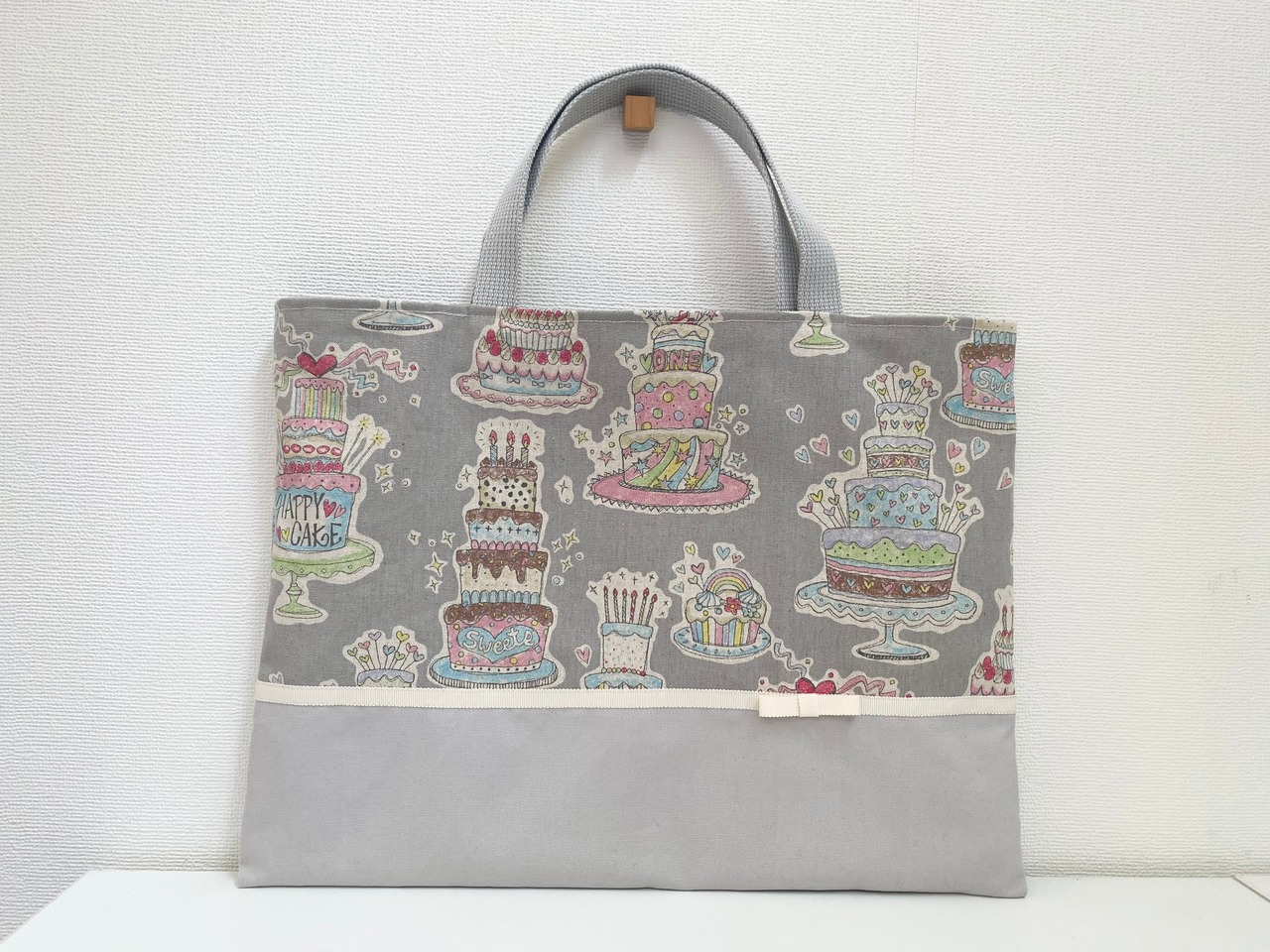 可愛いケーキが沢山並んだ柄のレッスンバックとシューズバックのセットです。
