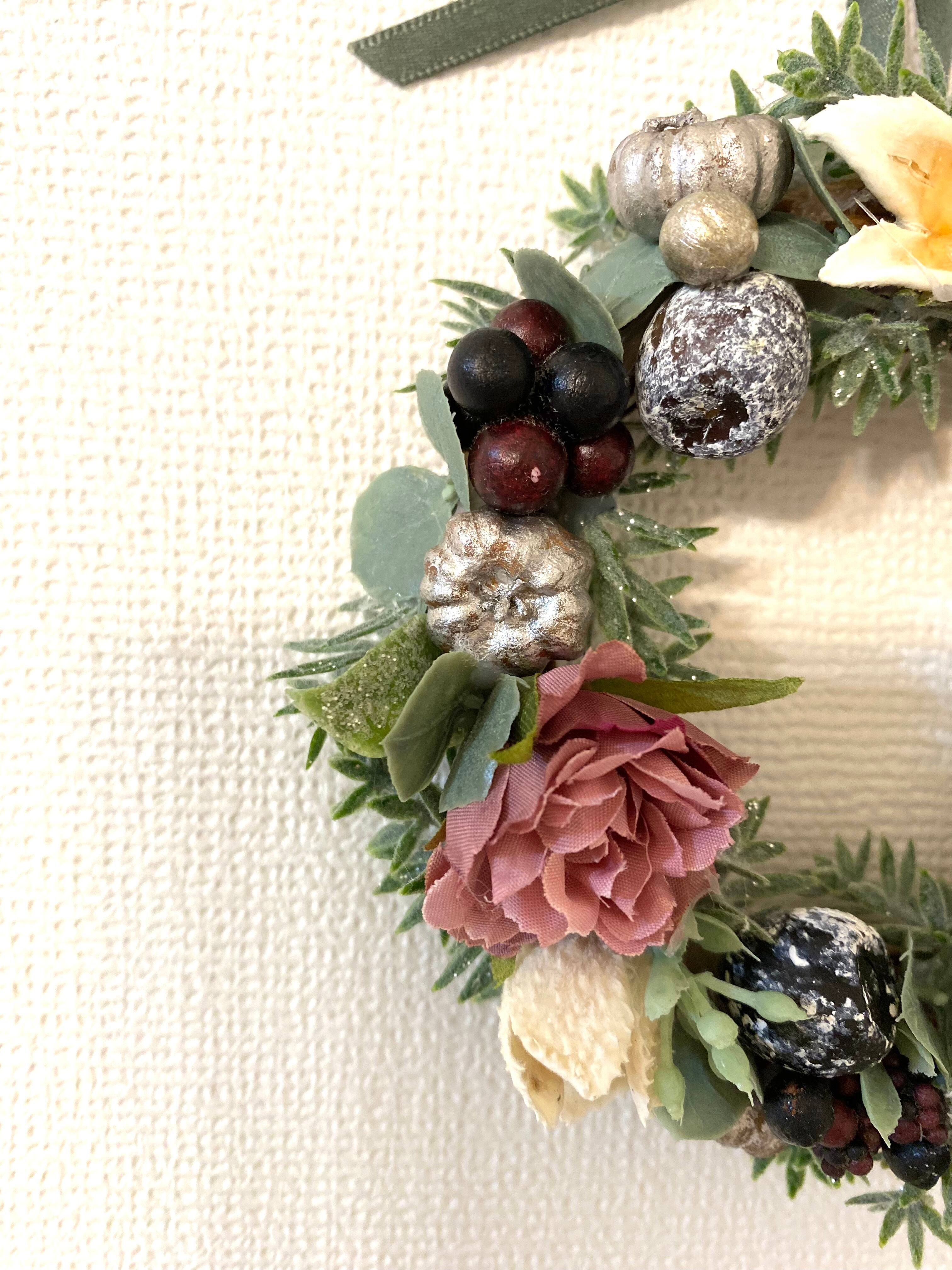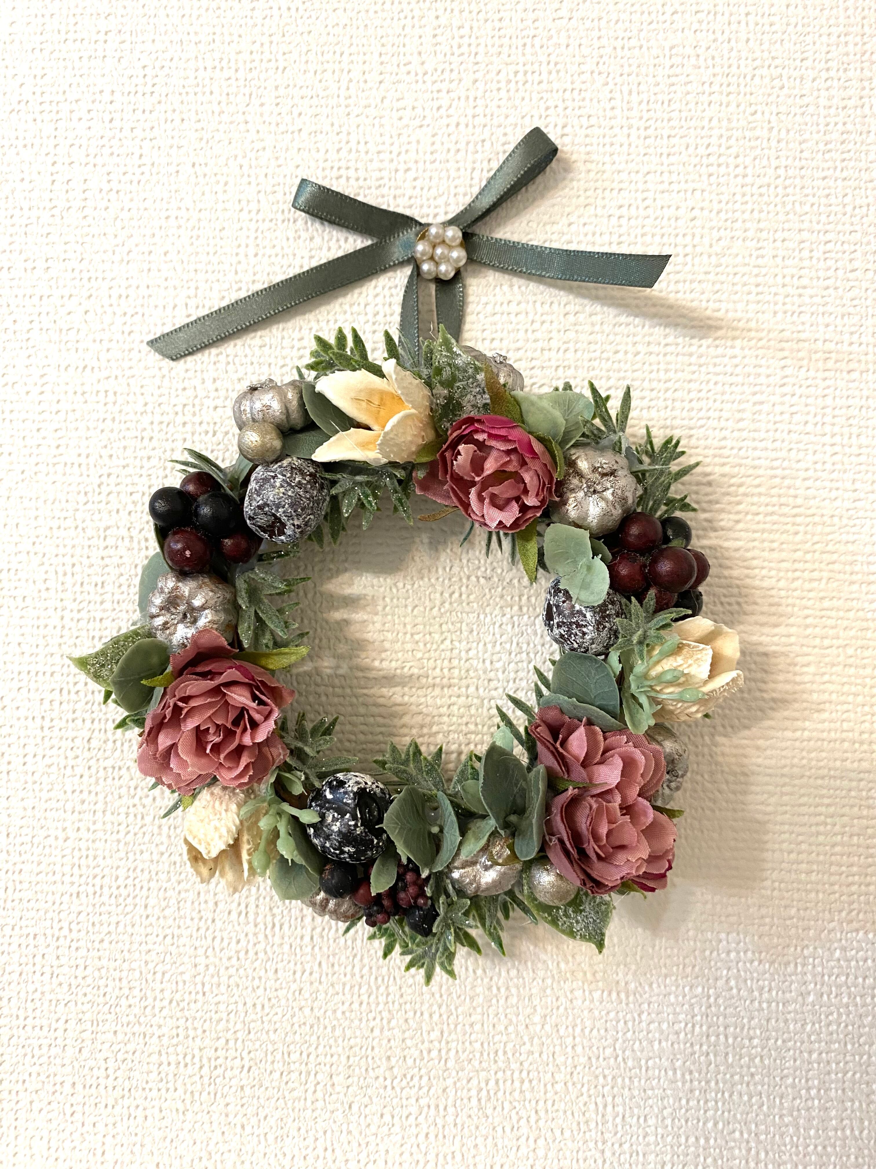 場所を選ばない小さなリースなのでお部屋のちょっとしたところに飾っていただけます。