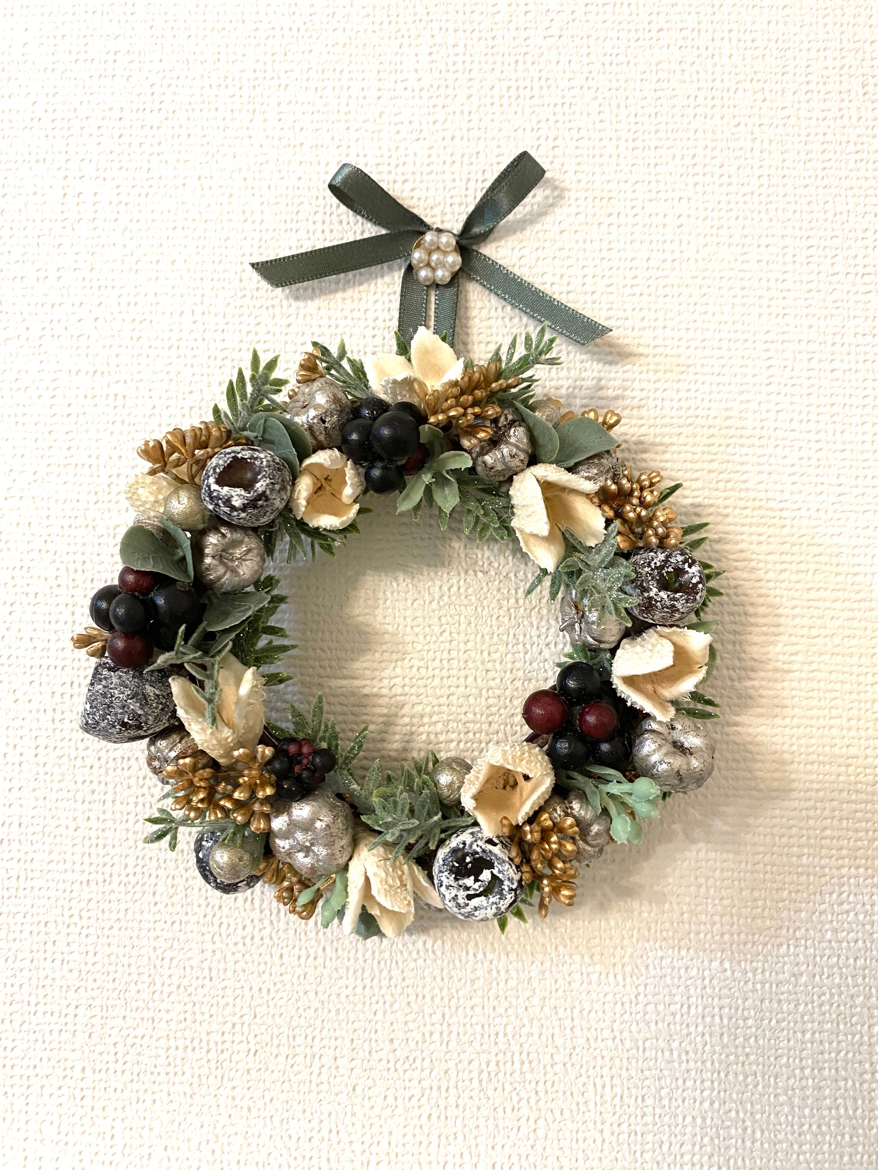 場所を選ばない小さなリースなのでお部屋のちょっとしたところに飾っていただけます。